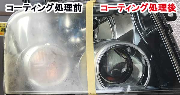 ヘッドライトコーティングでレンズの表面の透明度は新品同様に復活します。※1年間保証
